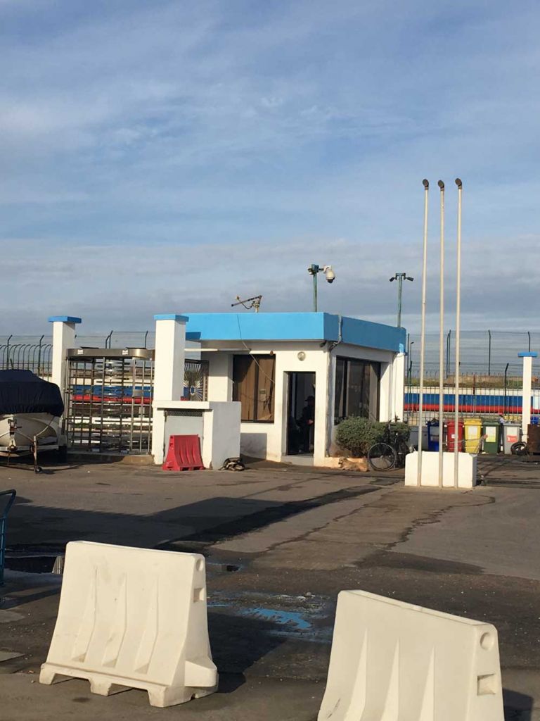 - 24-Stunden Kontrollstation der Polizei (Einfahrt zum gesamten Hafenareal).